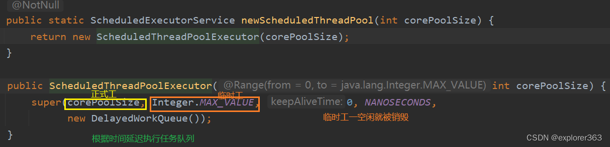 maximumPoolSize: 正式线程 + 临时线程的数目. (临时工: 一段时间不干活, 就被辞退).