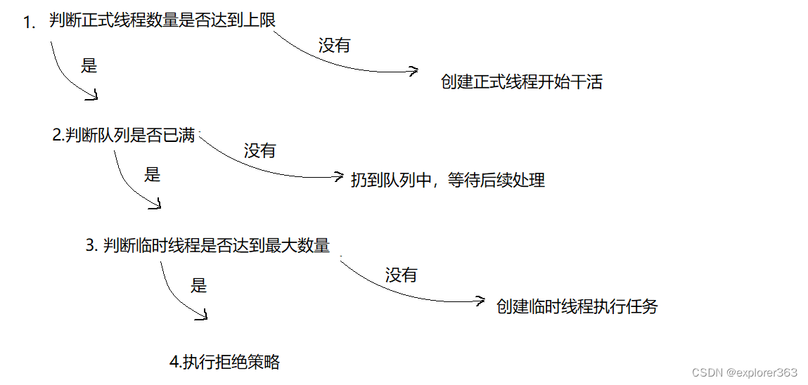 RejectedExecutionHandler: 拒绝策略, 如果任务量超出公司的负荷了接下来怎么处理. AbortPolicy(): 超过负荷, 直接抛出异常.
