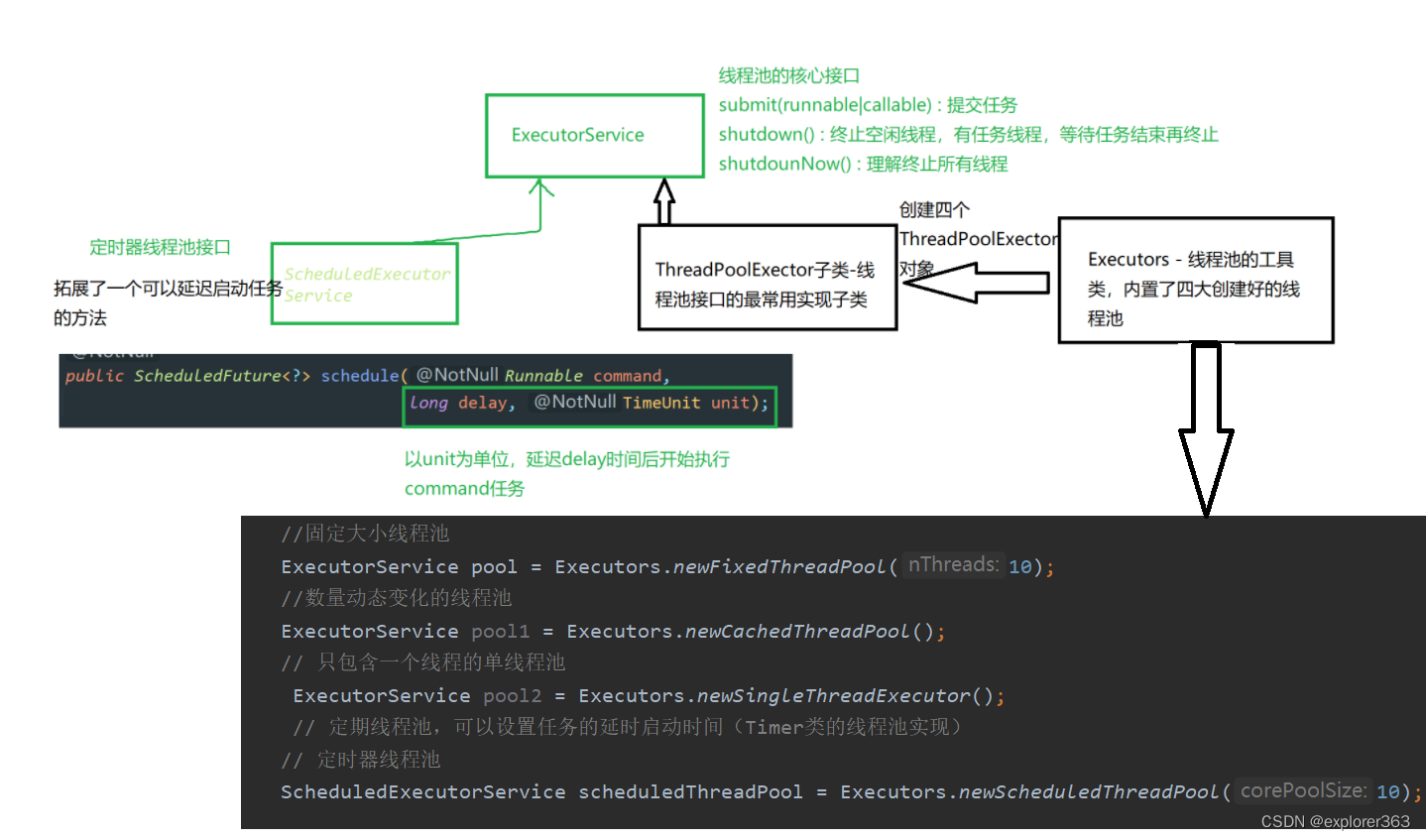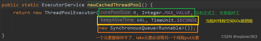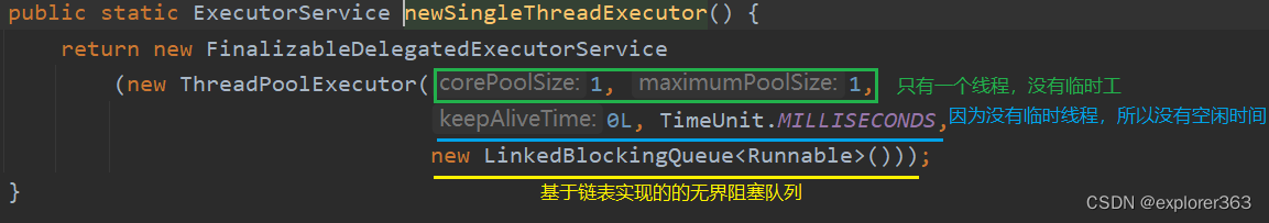 ThreadPoolExecutor-- 描述线程池的核心类(最常用的子类),这个类的构造方法就是创建一个线程池的所有核心参数。