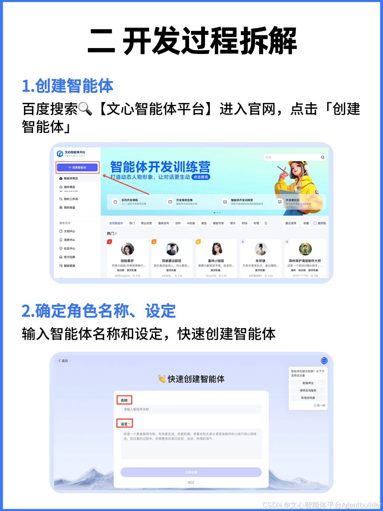 👉 点击左上角「创建智能体」,输入智能体名称和设定,一键创建智能体