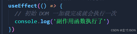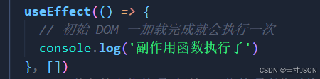 当我们给useEffect函数不写第二个参数“依赖项时”,它会在初始页面的DOM元素一加载完成时就会执行一次这个函数,而后当我们组件每次更新时都会继续执行。