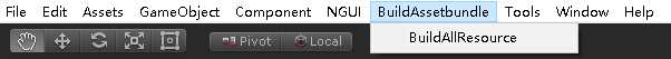 首先“[MenuItem(“BuildAssetbundle/BuildAllResource”)]”是为了在Unity的工具栏创建按钮,如图:
