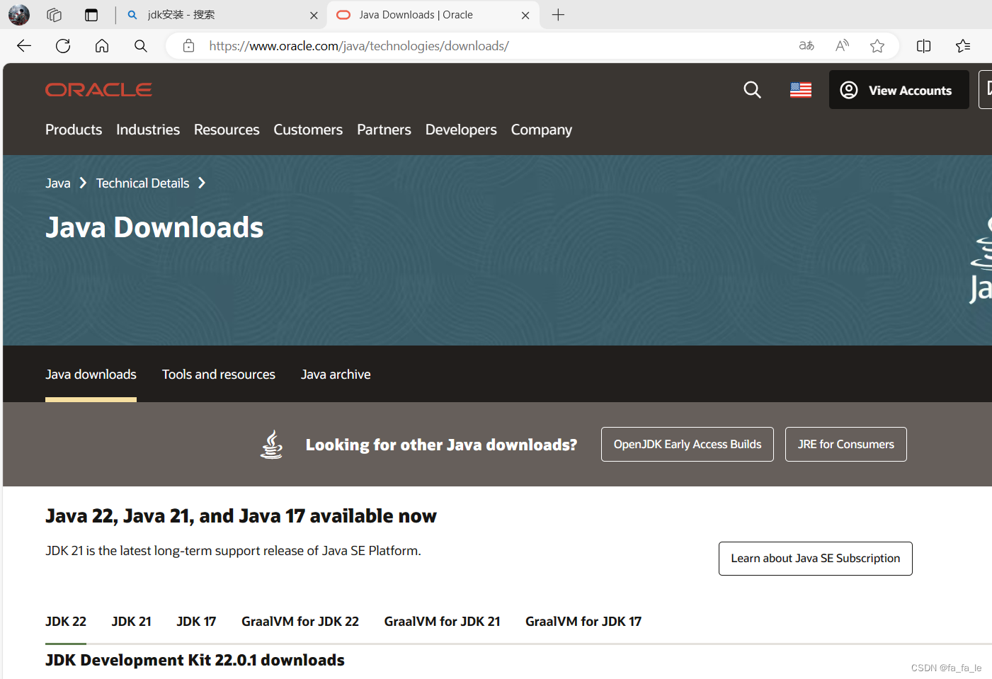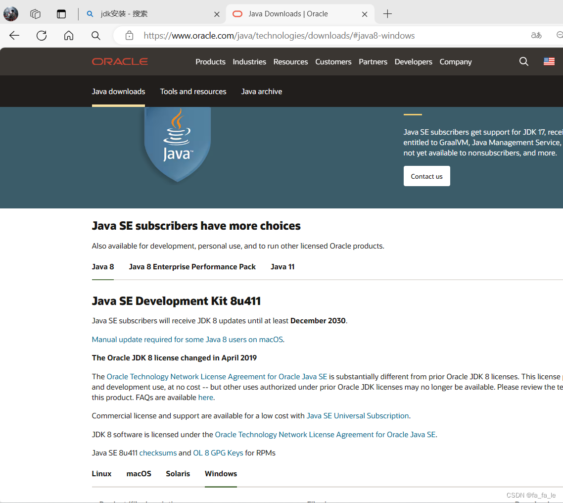 根据网上的教程,从官网上下载jdk,但是↓↓在这个页面跟丢了,才发现,他们下载的java SE8,需要往下翻,而不是这里的安装包下载。