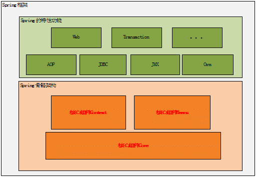 前面说 Bean 是 Spring 中关键因素,那 Context 和 Core 又有何作用呢?前面吧 Bean 比作一场演出中的演员的话,那 Context 就是这场演出的舞台背景,而 Core 应该就是演出的道具了。只有他们在一起才能具备能演出一场好戏的最基本的条件。当然有最基本的条件还不能使这场演出脱颖而出,还要他表演的节目足够的精彩,这些节目就是 Spring 能提供的特色功能了。