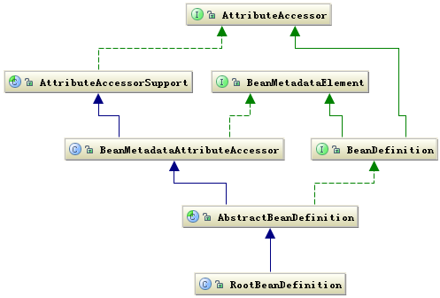 Bean 的定义主要有 BeanDefinition 描述,如下图说明了这些类的层次关系: