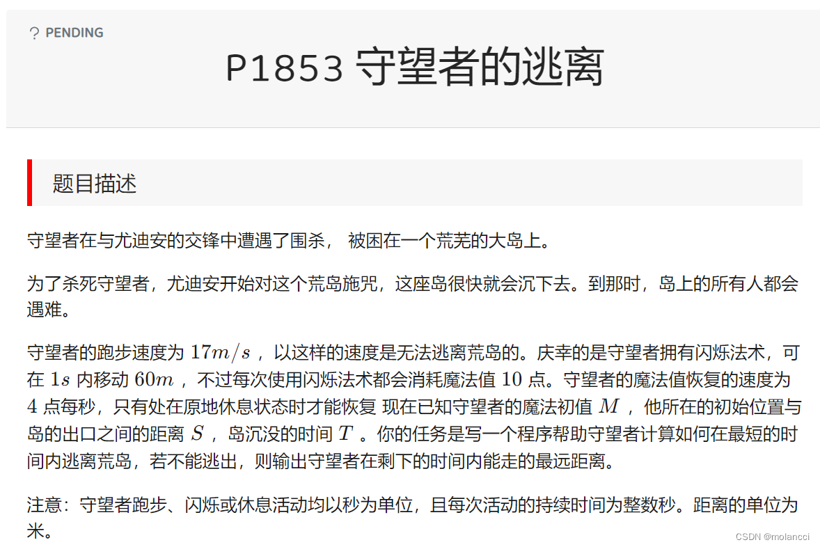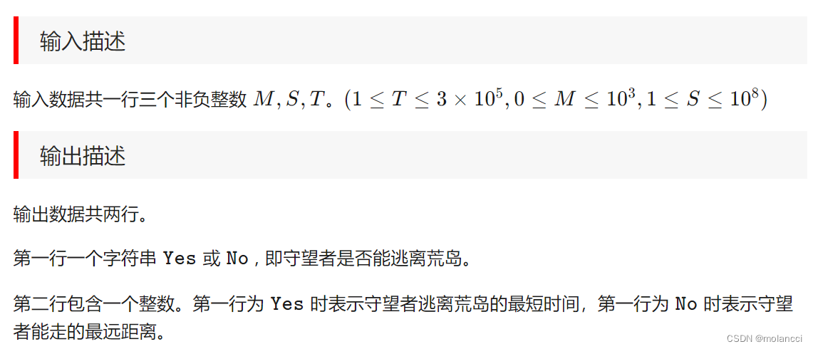 该程序通过一个for循环模拟每秒的移动过程,主角在1秒内可以跑17米,或者消耗10点魔法瞬移60米。如果魔法值不足10,则每秒恢复4点。当主角的移动距离超过给定目标时,输出Yes表示能在限定时间内逃脱;否则输出No。