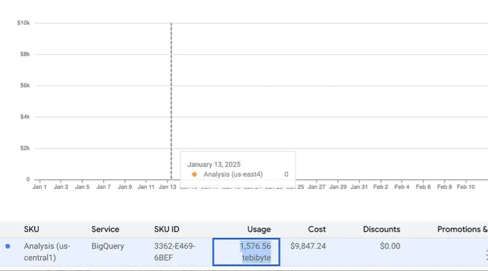 🔥🔥 BigQuery 向我们收了将近一万美元。🔥🔥