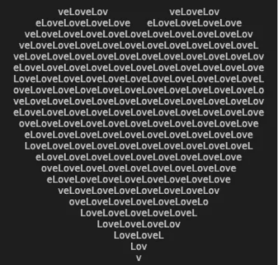 if ((x*0.05)**2+(y*0.1)**2-1)**3-(x*0.05)**2*(y*0.1)**3 <= 0 else '') for x in range(-30, 30)]) for y in range(30, -30, -1)]))