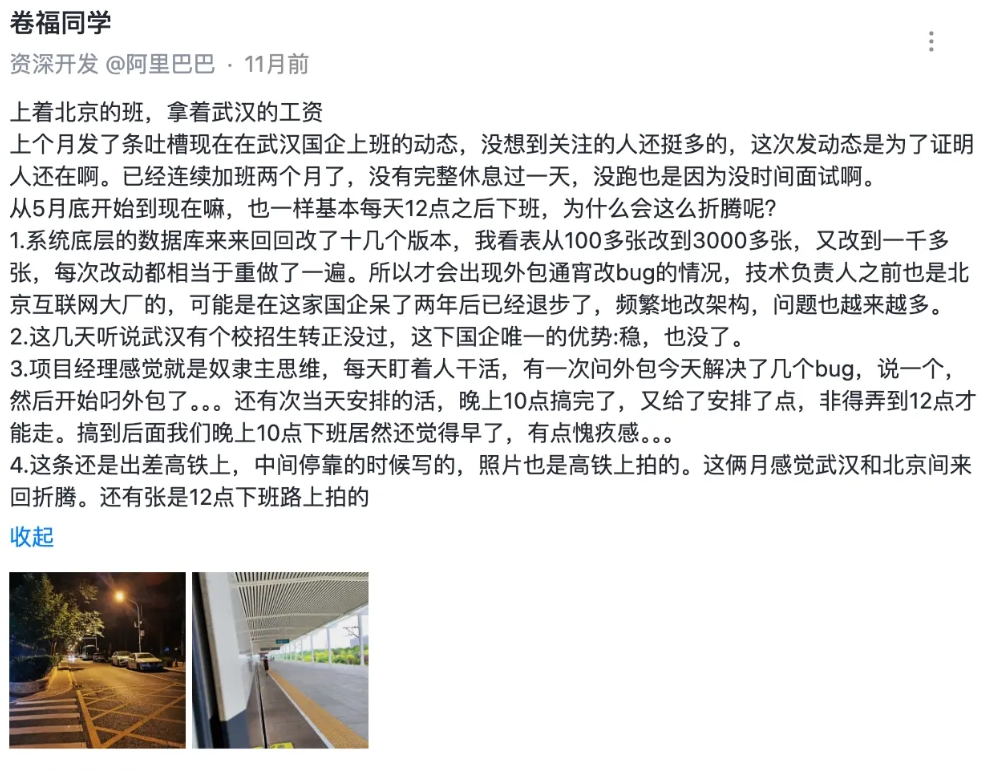 国企这边虽然说相对比较稳定,但是自从我这批大概20个人入职后,感觉在走下坡路了,不仅福利变少,而且也变卷了,还传出后面也要搞末尾淘汰的事。我呆了一年的时候,感觉比在一线时更害怕,假如我在这里被裁了,或者呆满三年不续签了,可能很难再找到合适的工作了,自身成长和工作年限严重不匹配,想到这,我终于还是下了决定再去一线城市。