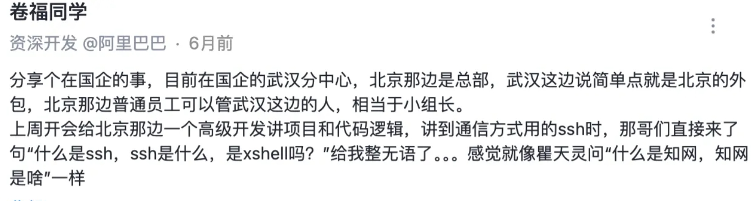 23年12月的时候,我从北京阿里离职了,回到离家近的武汉,拿了一个国企的offer,也是在那家国企待了一年多的时间。
