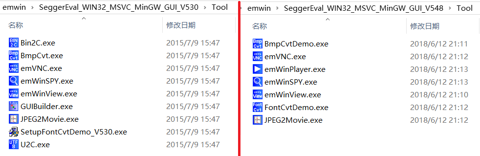 2、软件小工具:FontCvtDemo.exe、U2C.exe(下面是两个新旧版本V530和V548自带的工具列表,V548少了一些工具),两个版本的工具在本文最后有提供