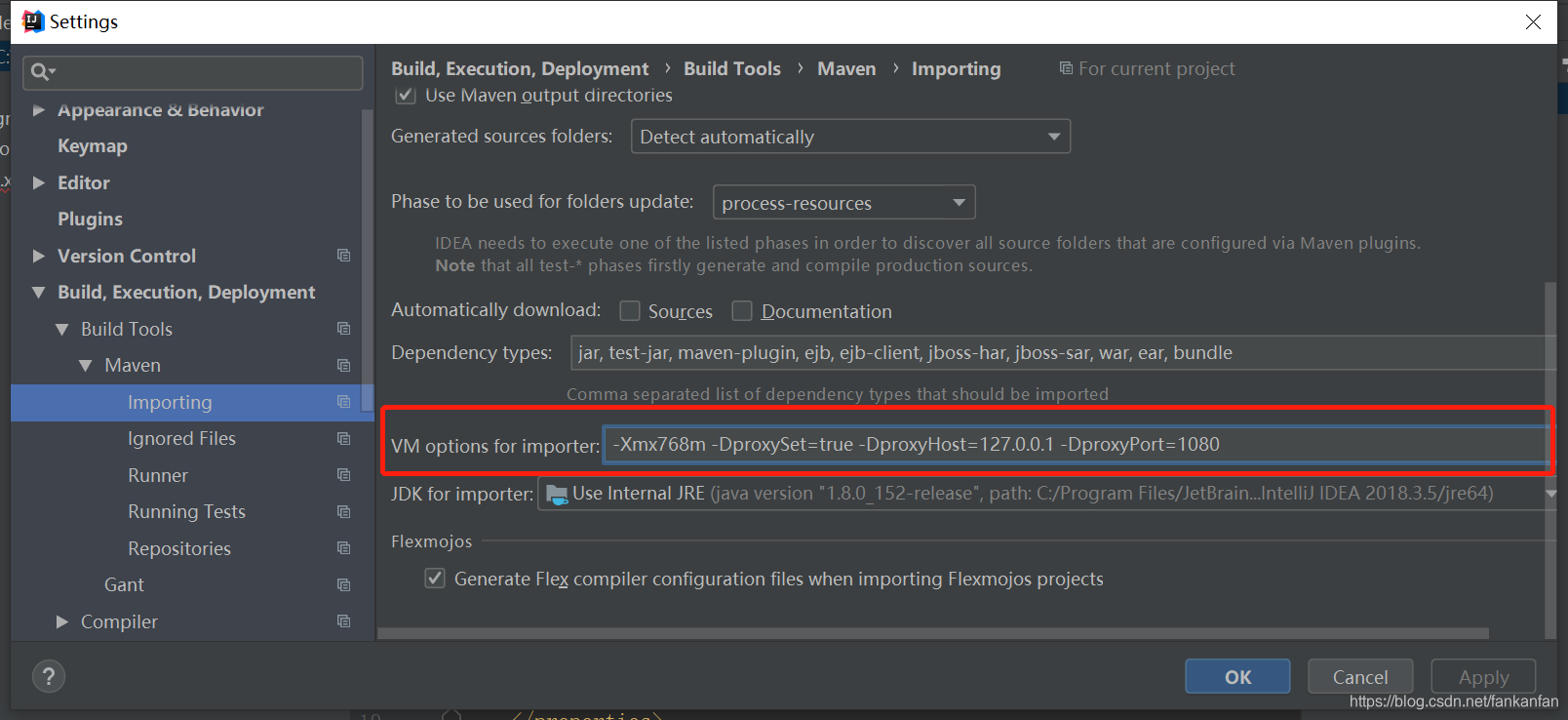 -DproxySet=true -DproxyHost=127.0.0.1 -DproxyPort=1080