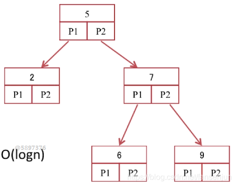 每个节点最多只有两个子树的树结构,通常子树被称为左子树或者右子树,二叉查找树的重要性质是:对于树中的每个节点x,左子树任意节点的值都小于X ,右子树任意节点的值均大于X。注意:索引的存储块和之前说的数据库最小存储单位块或者页实际上并非一一对应,只是为了方便我们的理解将其一一对应起来。索引的每个存储块存储的是关键字+指向子树的指针,像下图中的树,不仅仅是二叉树还是平衡二叉树。
