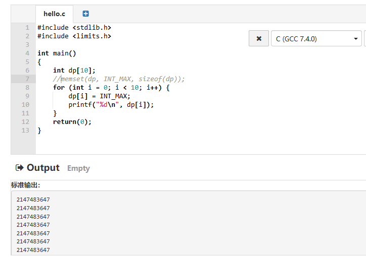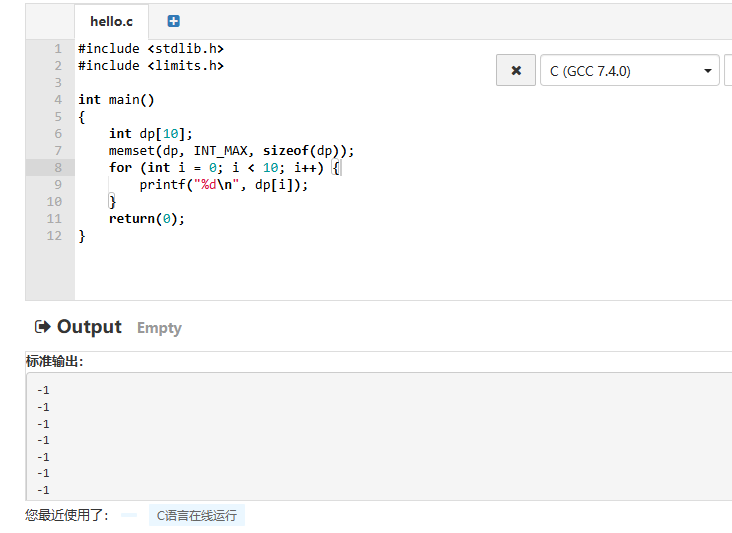像将一个int数组的值全设置为INT_MAX,想用memset,如下