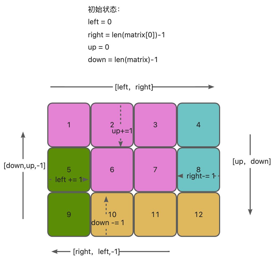 top, bottom, left, right = 0, len(matrix) - 1, 0, len(matrix[0]) - 1