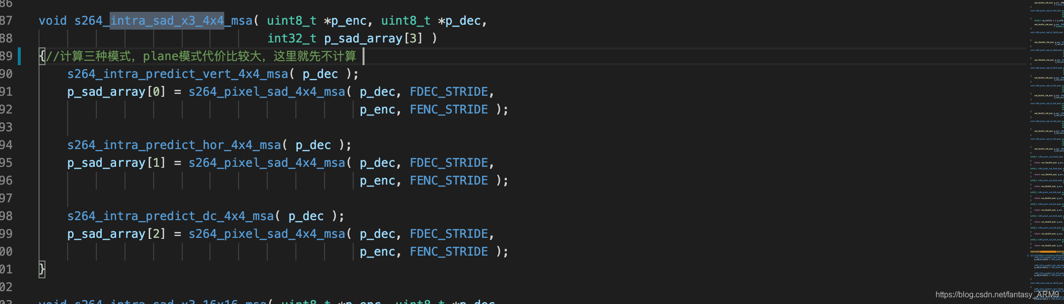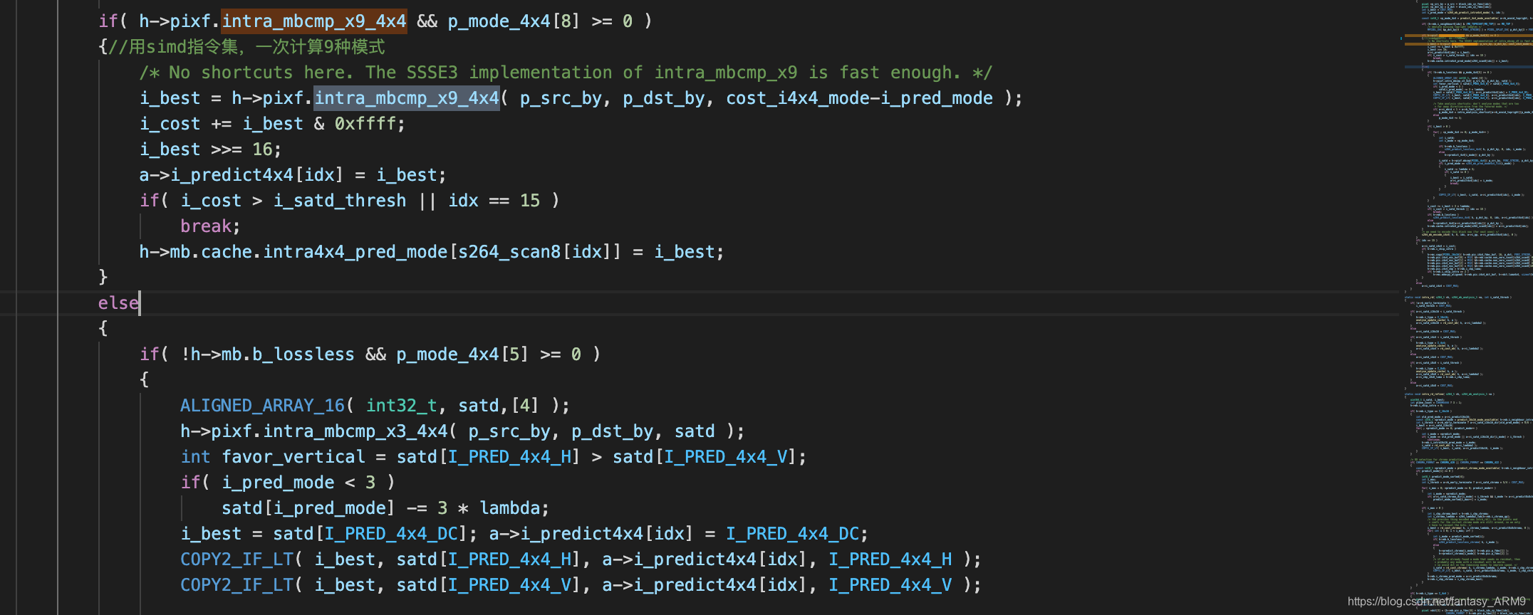计算宏块的satd的时候,用simd一次实现9种预测模式。