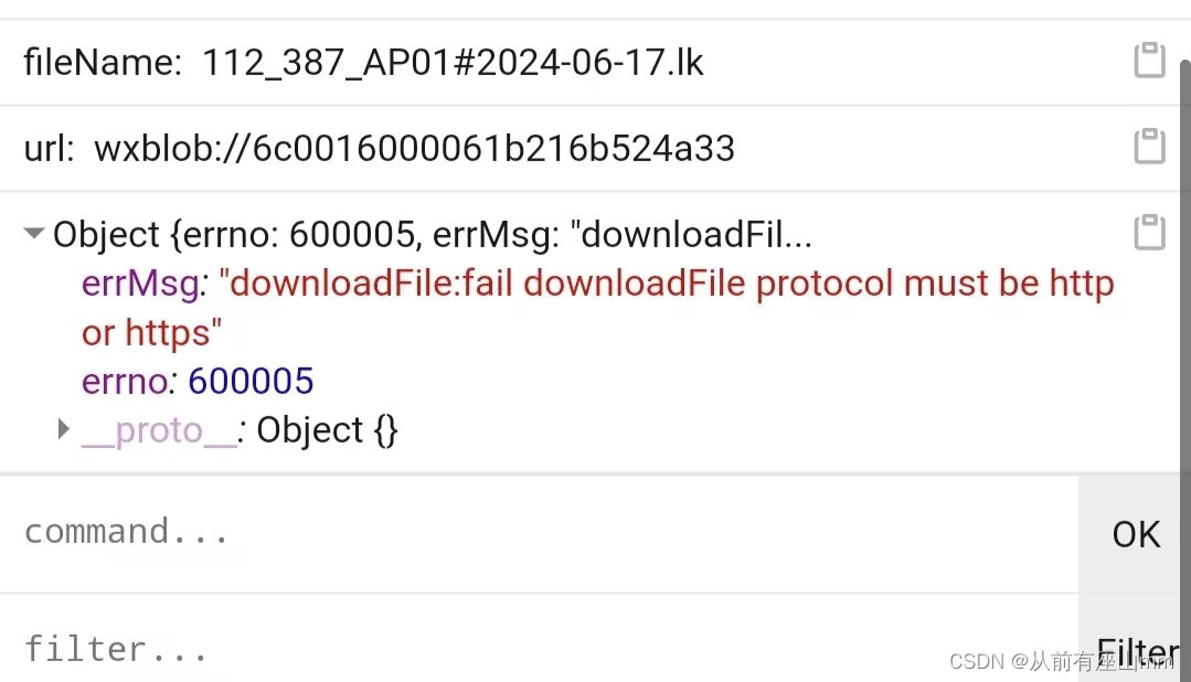 在小程序调试中该方法可以正常下载,不出意外的话就不会出意外,发布体验版测试,该来的它还是来了,protocol must be http or https