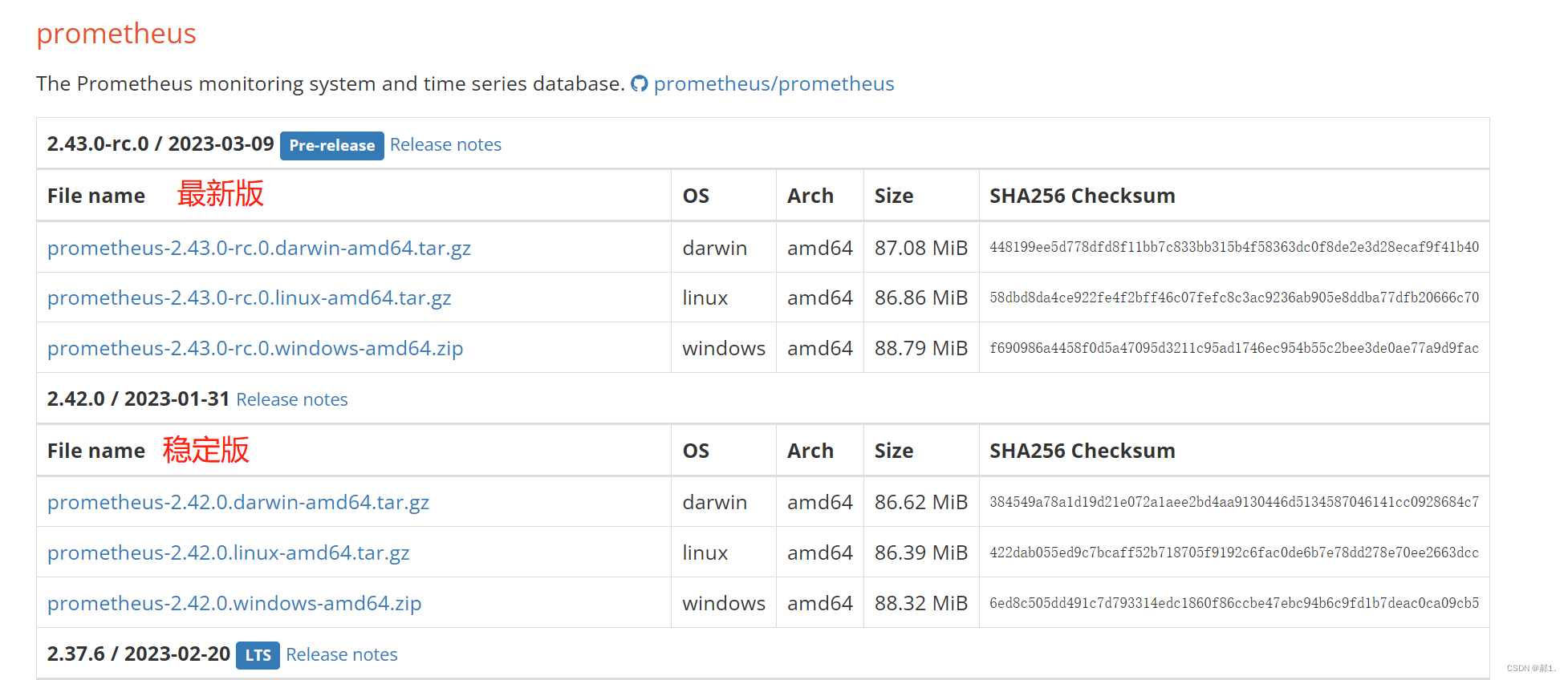 在prometheus的官网的download页面,可以找到prometheus的下载二进制包。