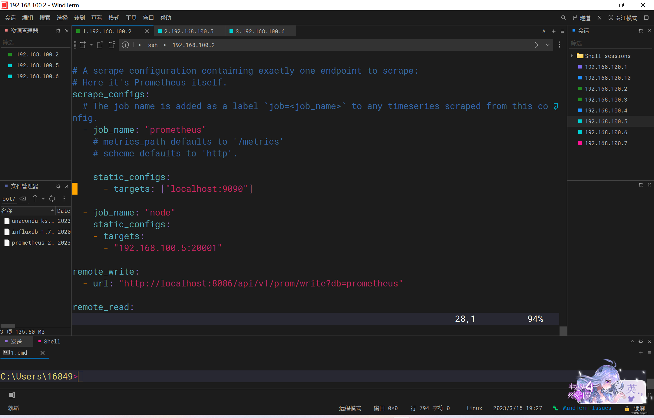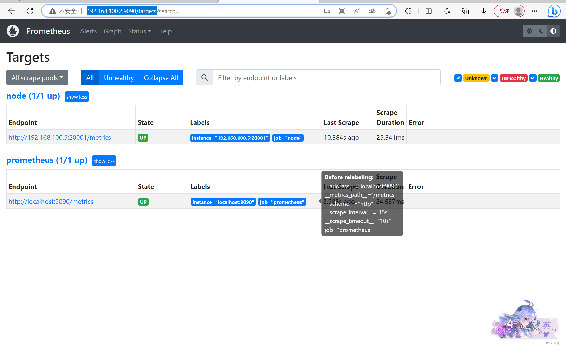 为了能让prometheus监控到node,需要编辑prometheus配置文件
