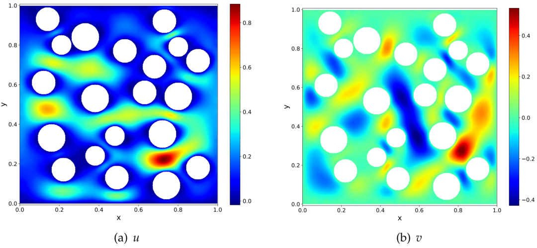 然而,值得关注的是,神经网络比较明显的优势在处理高维问题上。PDE 的大量实际应用场景所面临的挑战不在维数灾难上,而在几何复杂、多尺度等方面。此时,神经网络的优势不容易发挥出来,反倒因为非线性优化等方面的困难,面临着求解效率低、误差不可控、难以系统改进等挑战。因此,如何融合经典数值方法与机器学习方法的优势,是一个亟待解决的问题。在这个大背景下,陈景润、池煦荣、鄂维南、杨周旺四位学者于 2022 年提出随机特征方法(The Random Feature Method, RFM)。RFM 在避免网格生成、容易处理复杂几何区域(如图1)的同时,也在各种场景下都有媲美经典数值方法的精度和效率(如图2)。