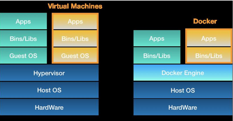 Docker利用的是宿主机的内核,VM有自己的Guest OS。