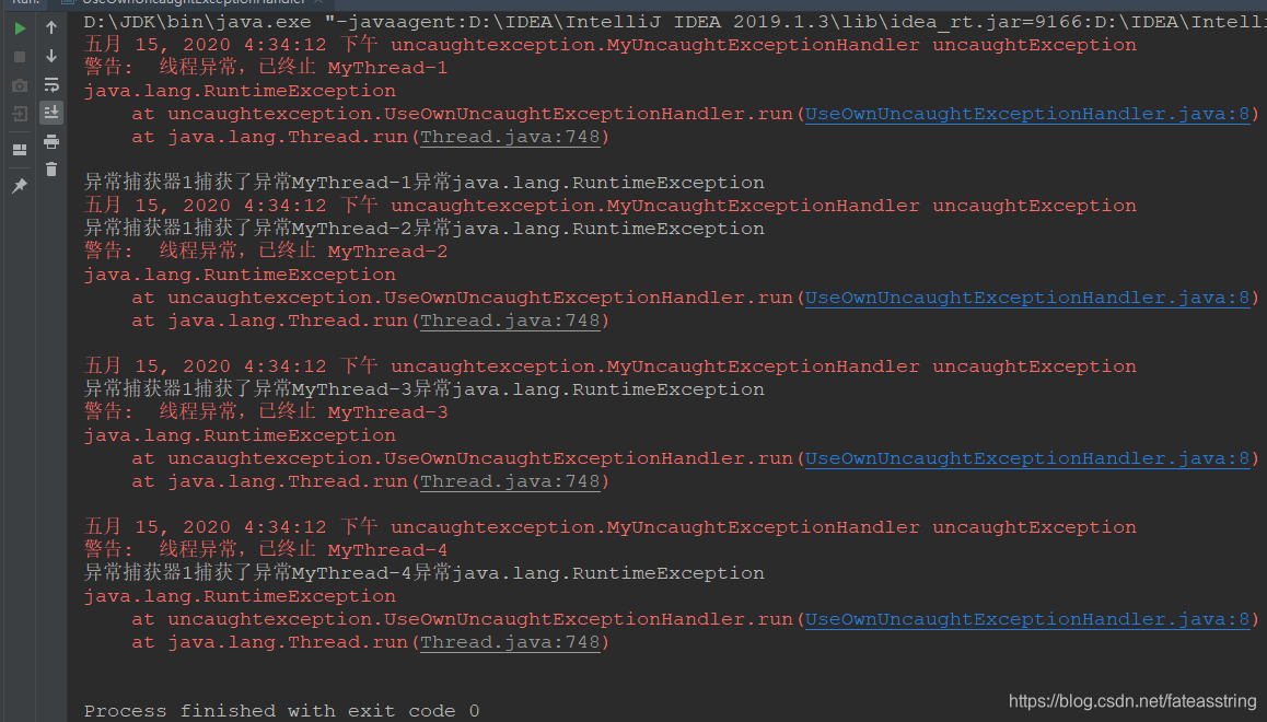 new Thread(new UseOwnUncaughtExceptionHandler(),"MyThread-4").start();