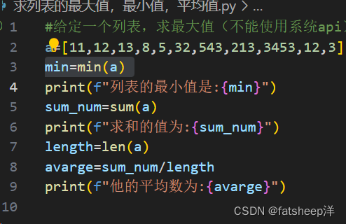 3.给定一个列表,求最大值(不能使用系统api),求最小值,求平均值、求和