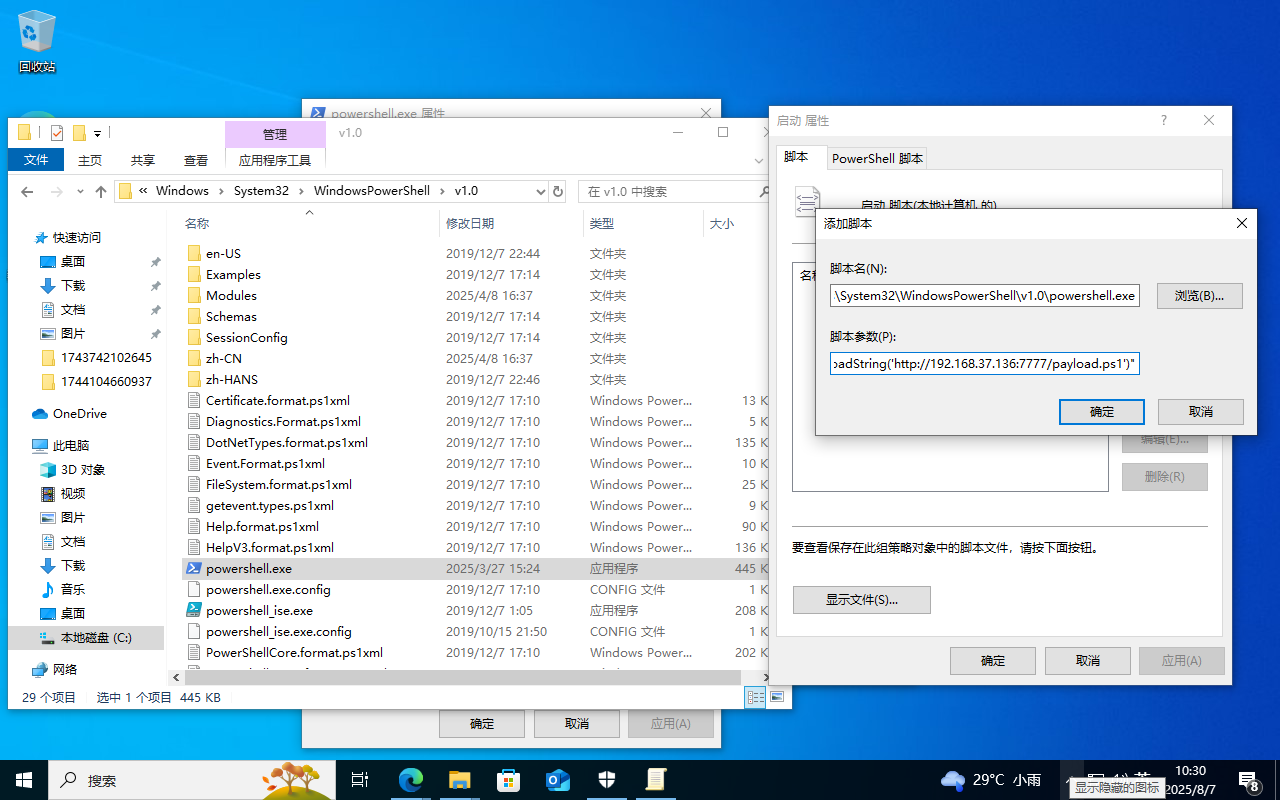运行gpedit.msc进入本地组策略,通过Windows设置的“脚本(启动/关机)”项来说实现。因为其极具隐蔽性,因此常常被攻击者利用来做服务器后门。