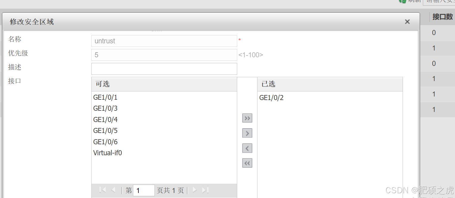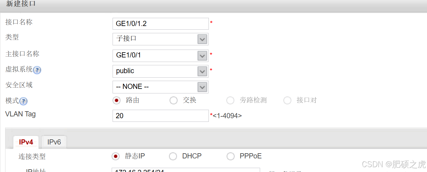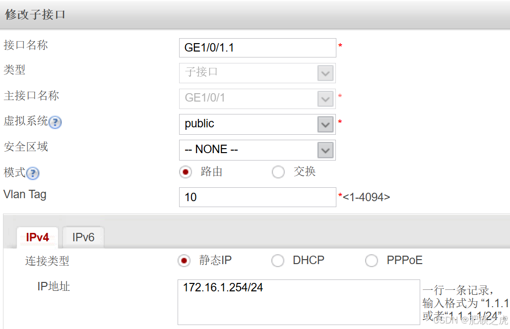 完善GE1/0/1.1信息,操作如下