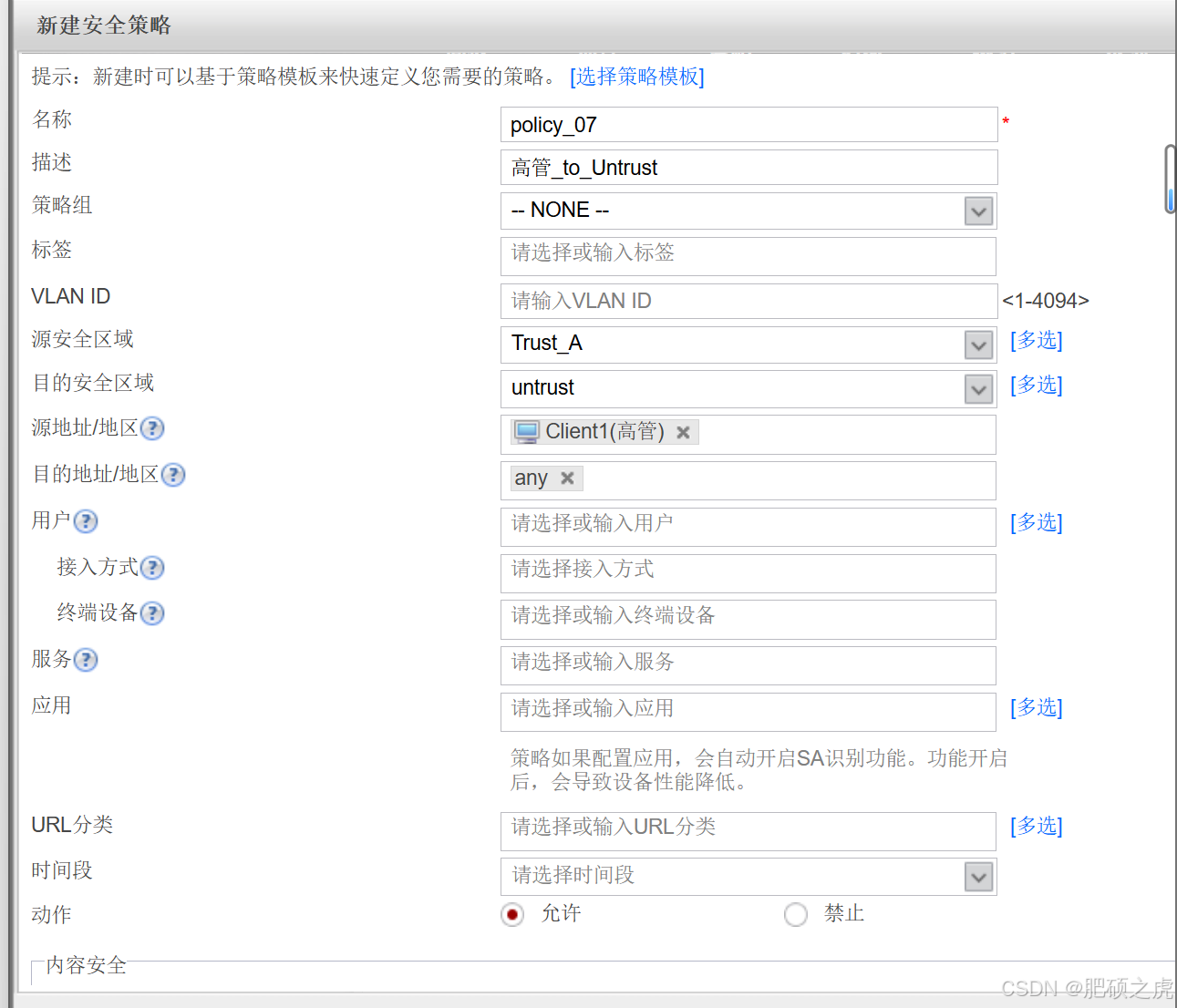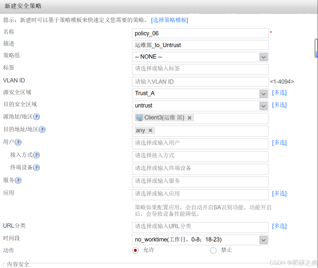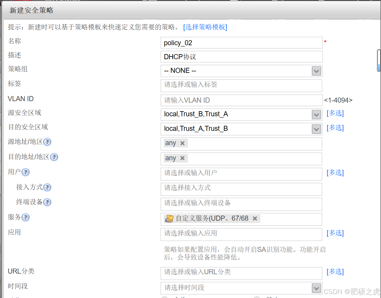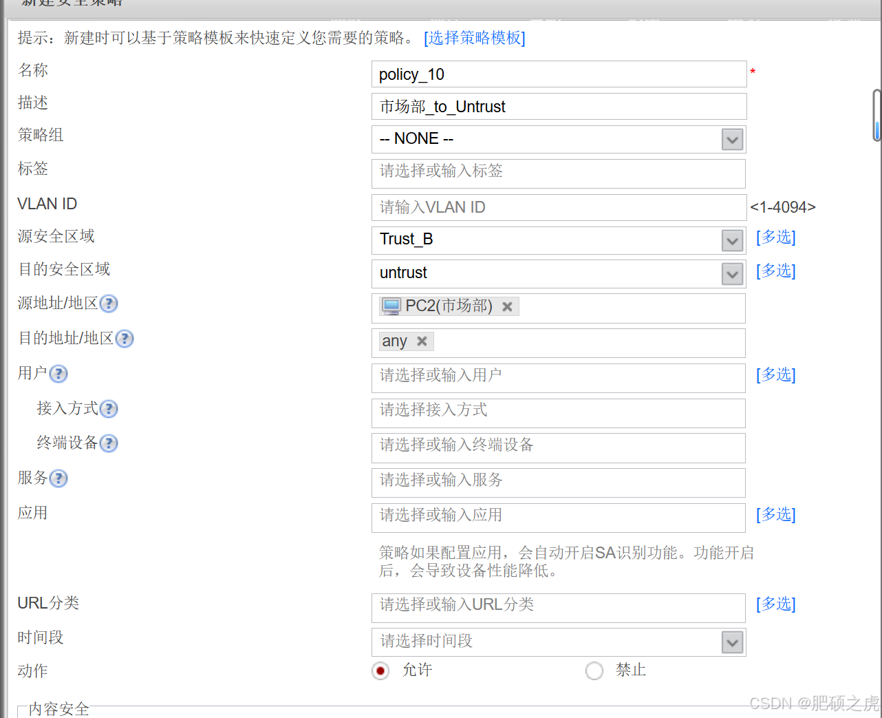 步骤1:安全策略:点开最上面的策略,在左边的服务里找到安全策略,根据要求创建策略如下