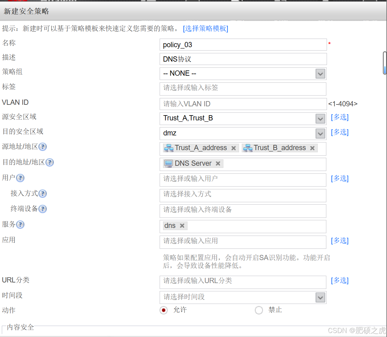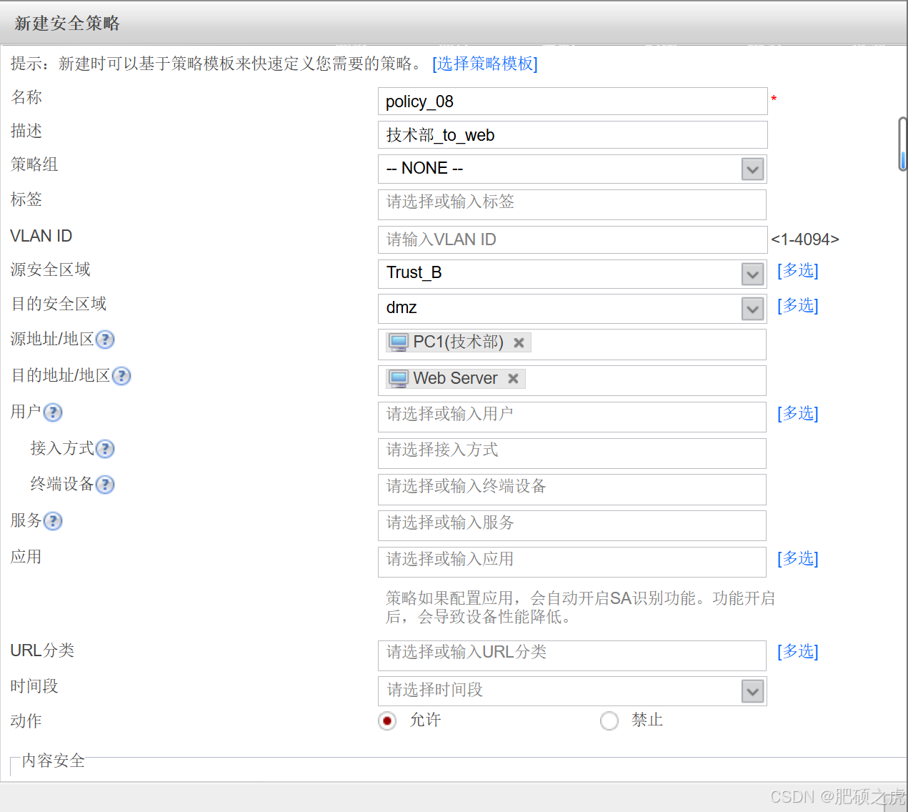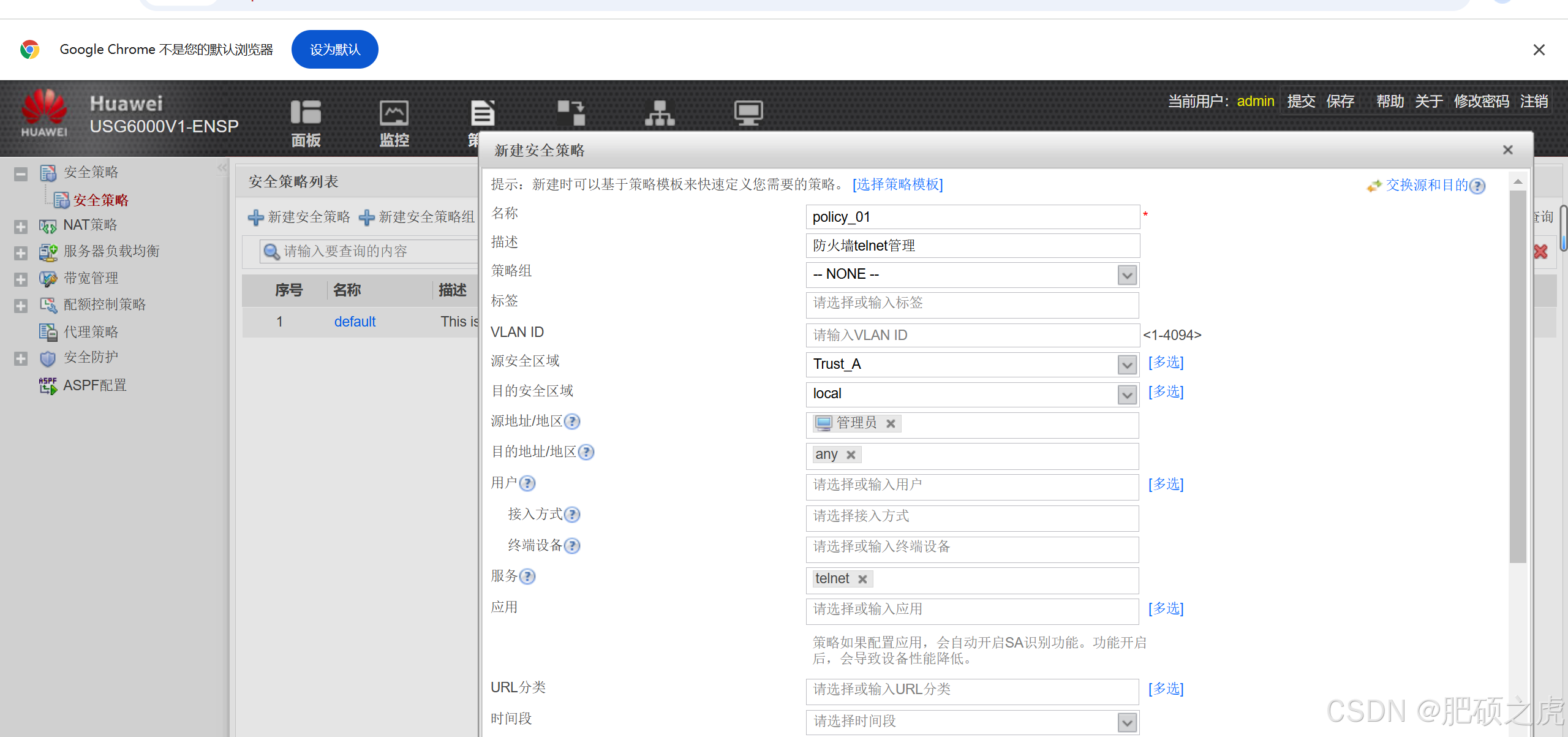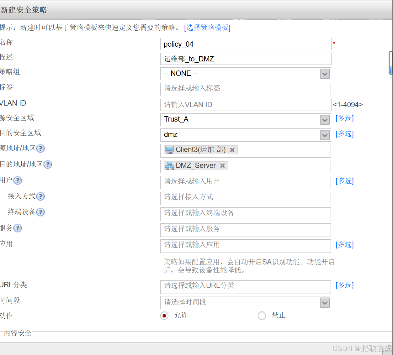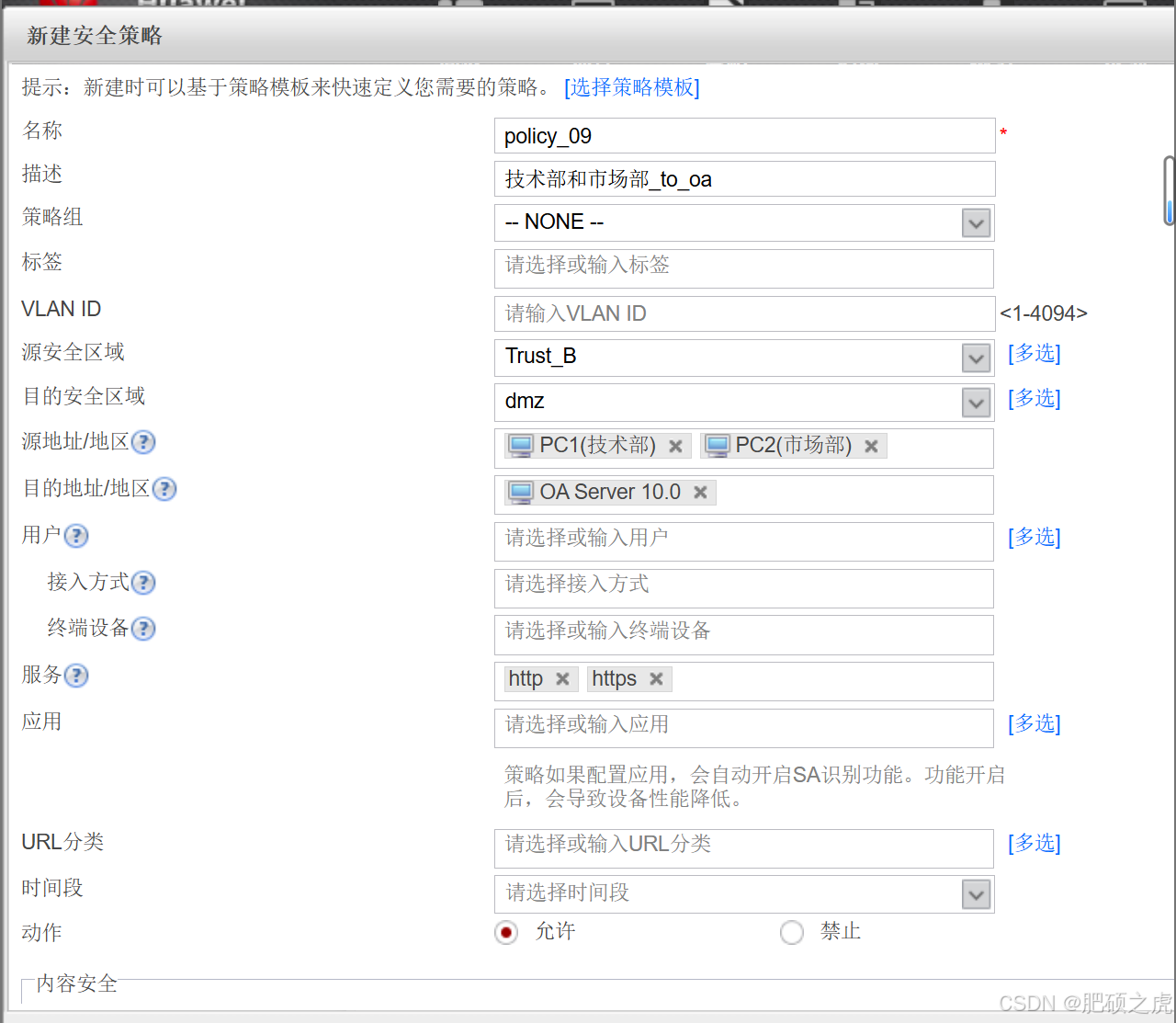 步骤1:安全策略:点开最上面的策略,在左边的服务里找到安全策略,根据要求创建策略如下