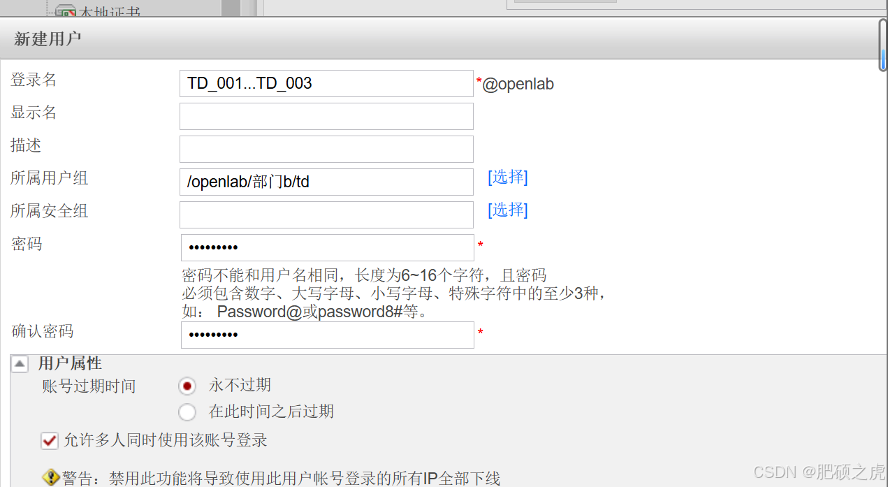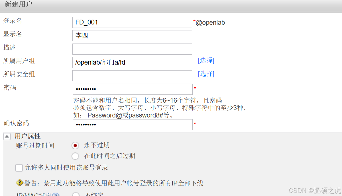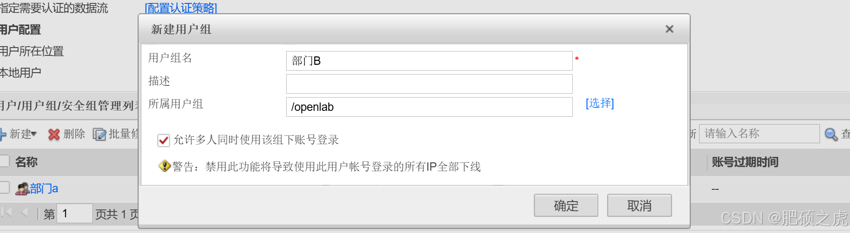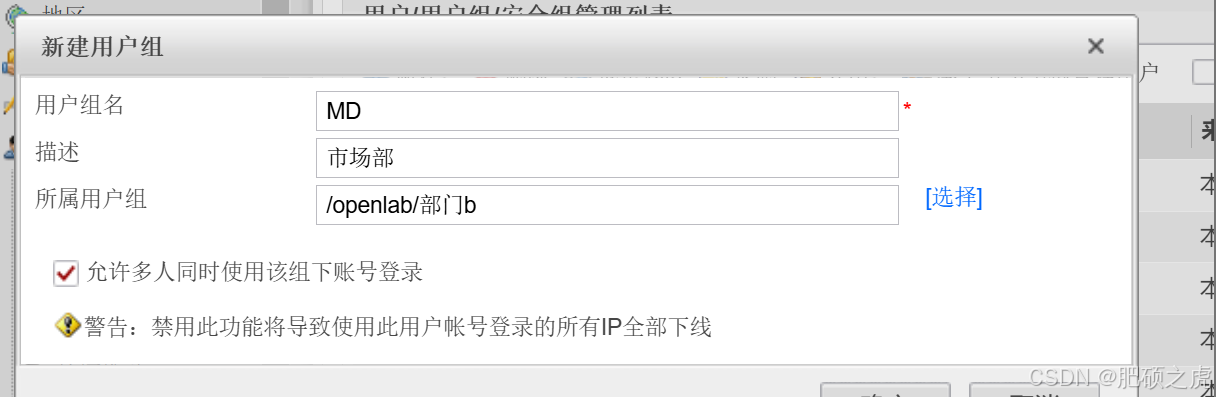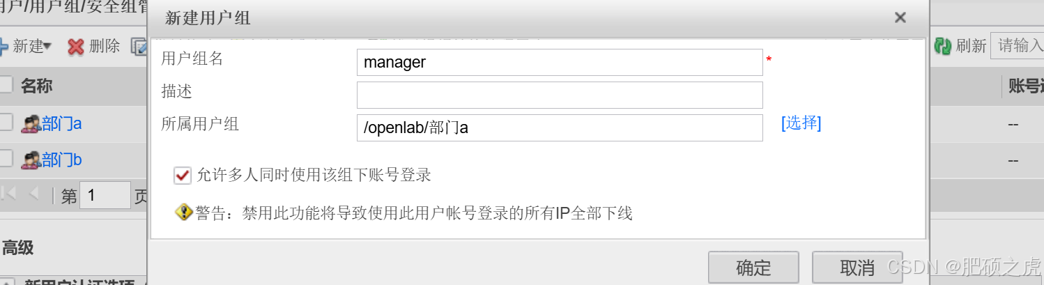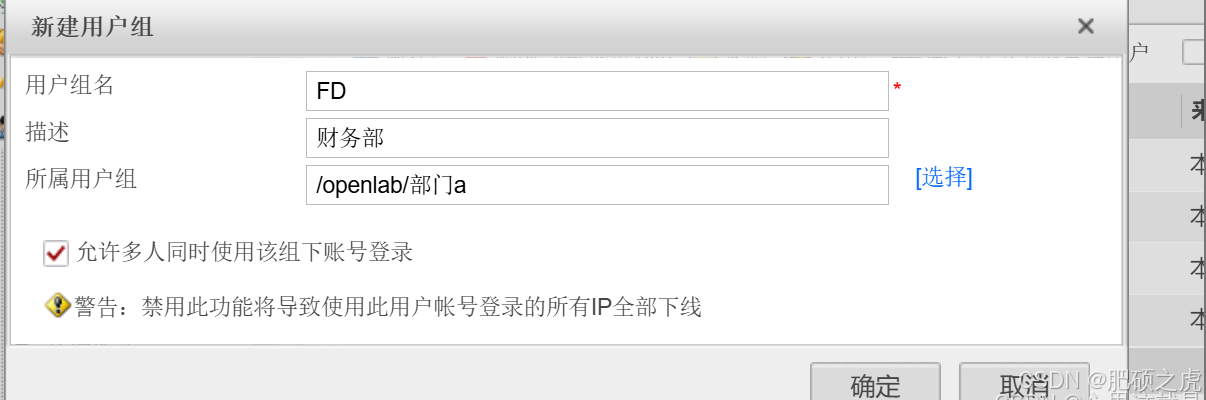 步骤2:创建用户组的信息:点开最上面的对象,在左边的服务里找到用户,在用户下面找到openlab,在里面编辑新建,新建用户组,根据要求创建部门A和B