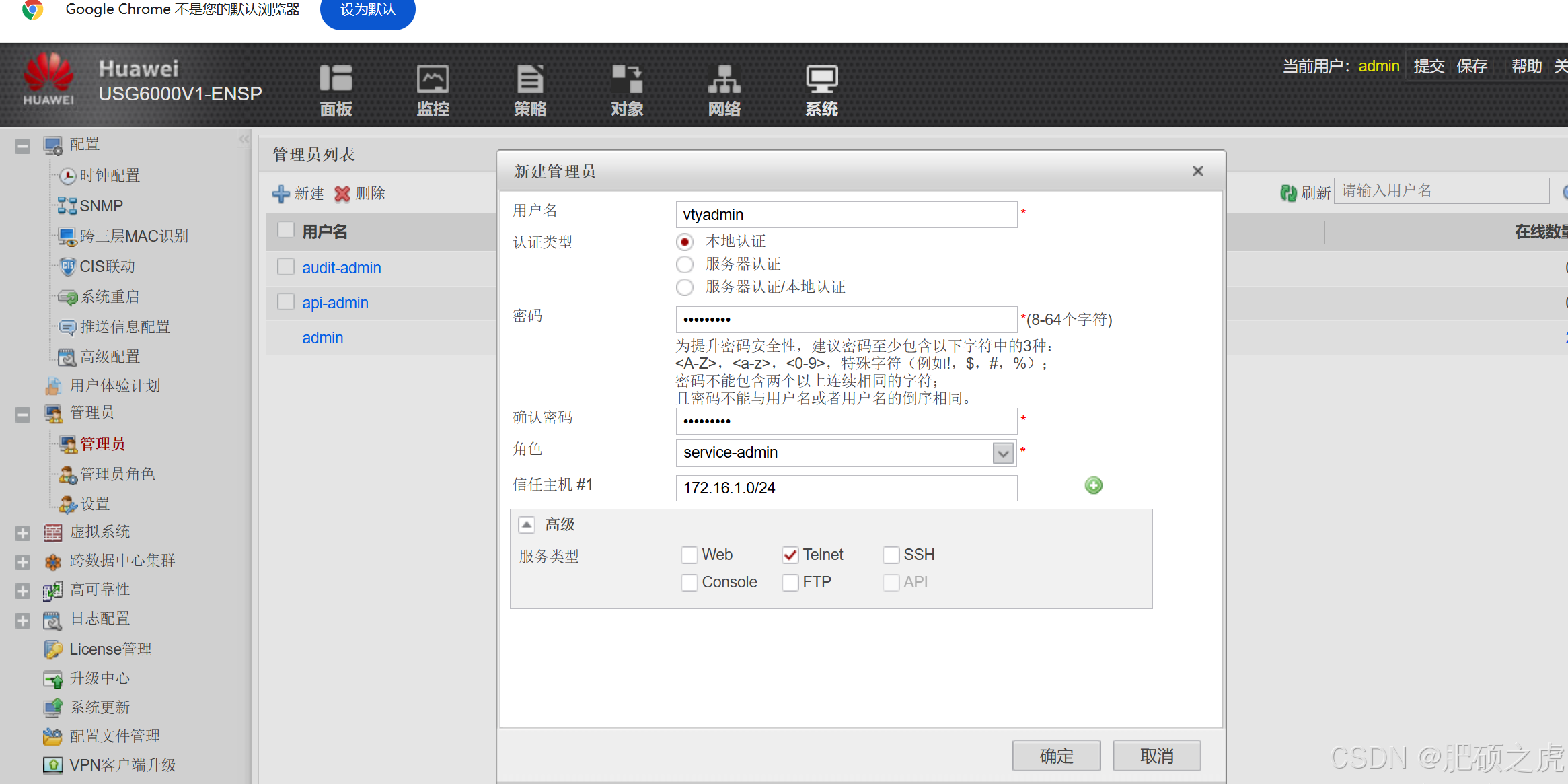 步骤3:创建管理员,点开最上面的系统,在左边的服务里找到管理员,在管理员下面找到管理员,在里面编辑新建,根据要求设置