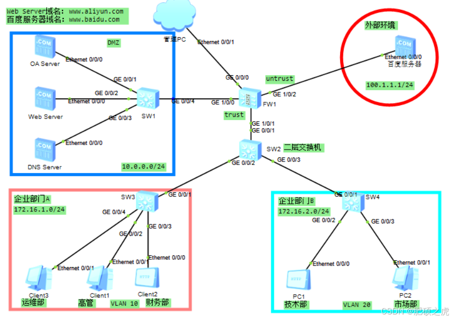 [FW-GigabitEthernet1/0/2]ip address 10.0.0.254/24