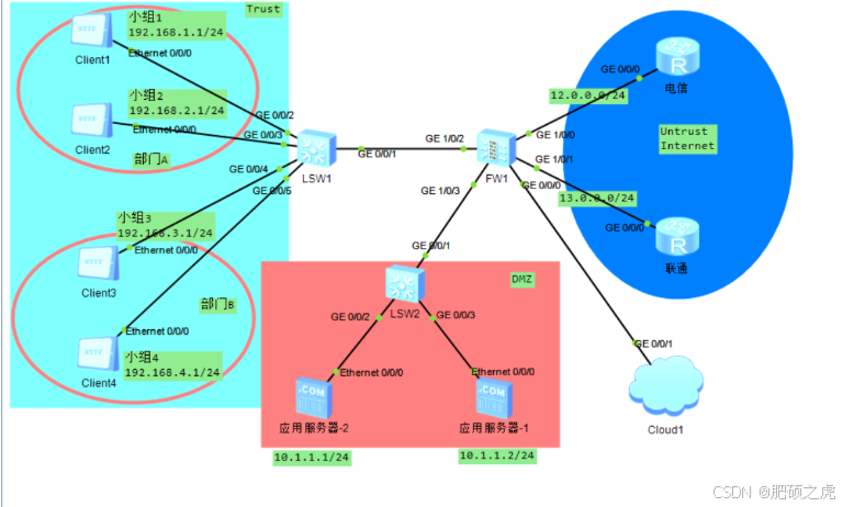 部门A的上网用户数量不固定,为了让用户公平的使用带宽,根据实际在线上网用户数量,平均分配带宽