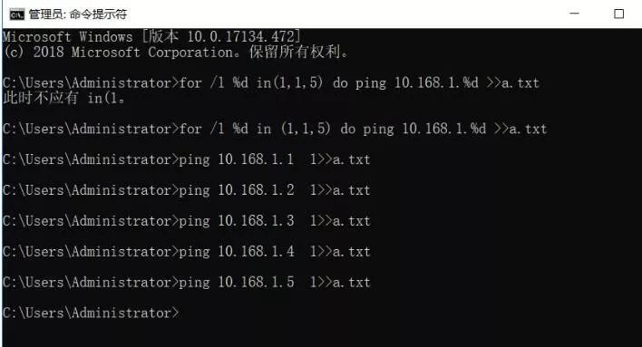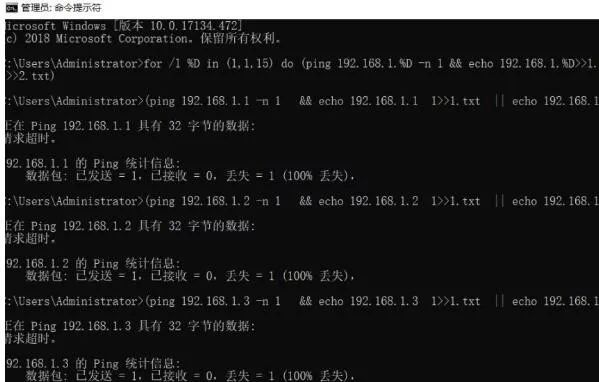上面的命令虽然能批量ping 地址,但是上面代码在命令行窗口显示数量多的时候看起来也很麻烦,那么再升级一下,用下面的代码。