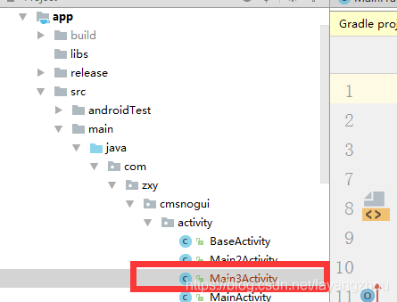 在弹出的对话框中选择你的项目,其中的代码会全部变红,我这里不是第一次,所以只有Main3Activity变红