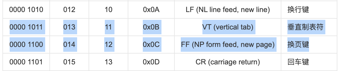 继续回到我们的优化,因为 \n 和 \r 在 ASCII 表中,位于这两个符号中间的那些都不常见,是垂直制表符和换页符,所以我们能够做一个快速的判断逻辑。【\n 是换行且使光标到行首;\r 是回车且使光标下移一格】