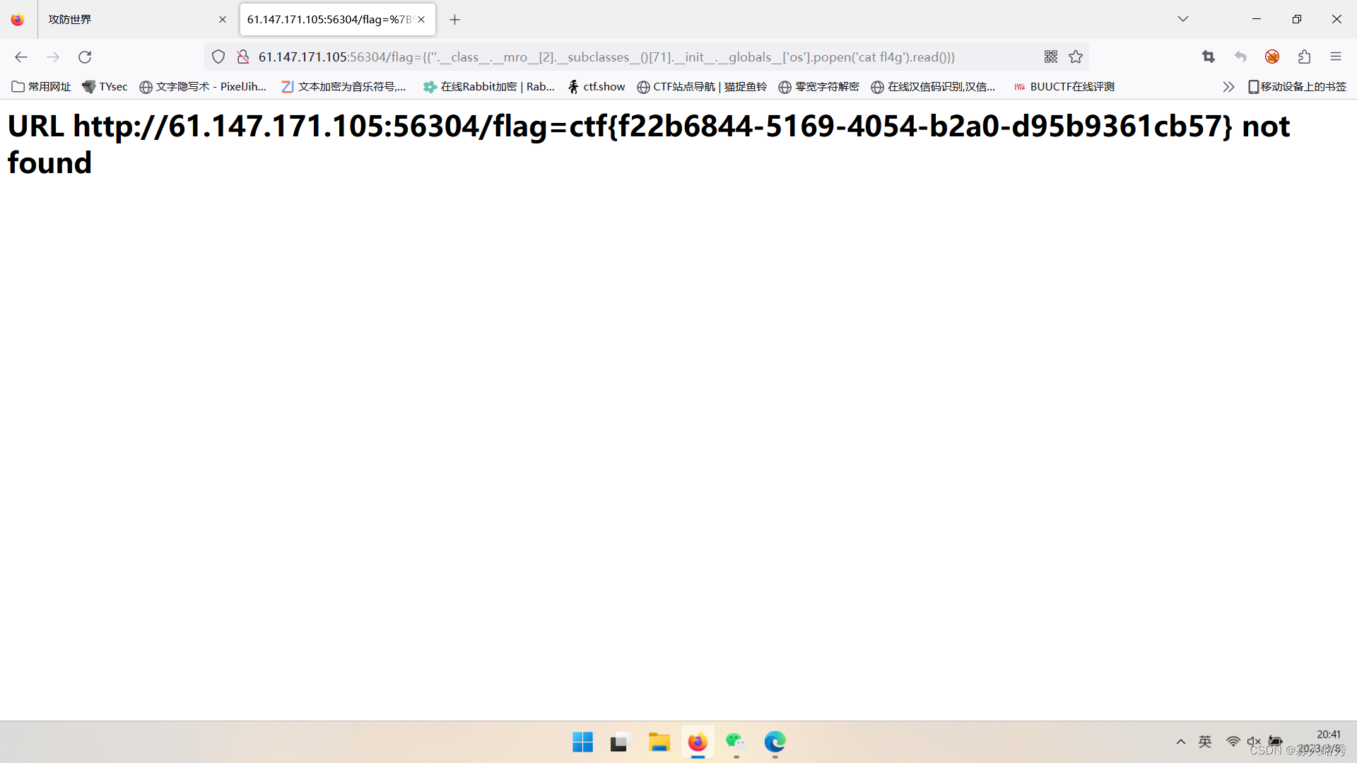 所以说这个变量的类是str。然后从这个类中找他的基类,payload:/flag={{’‘.class.mro}}