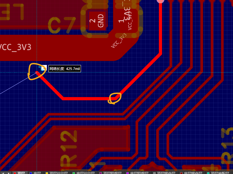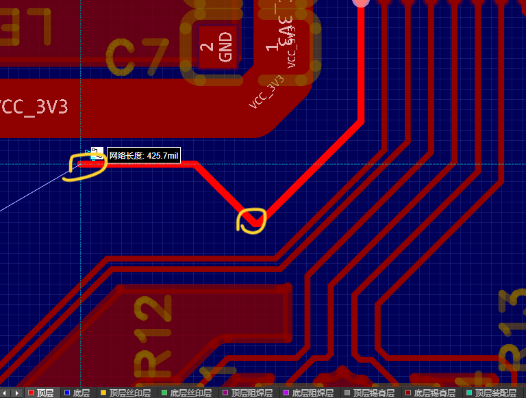 在PCB上走线的过程中,我们可以按空格键来切换两点之间走线的拐角处,选择在上方拐角或者在下方拐角。下面进行具体介绍。
