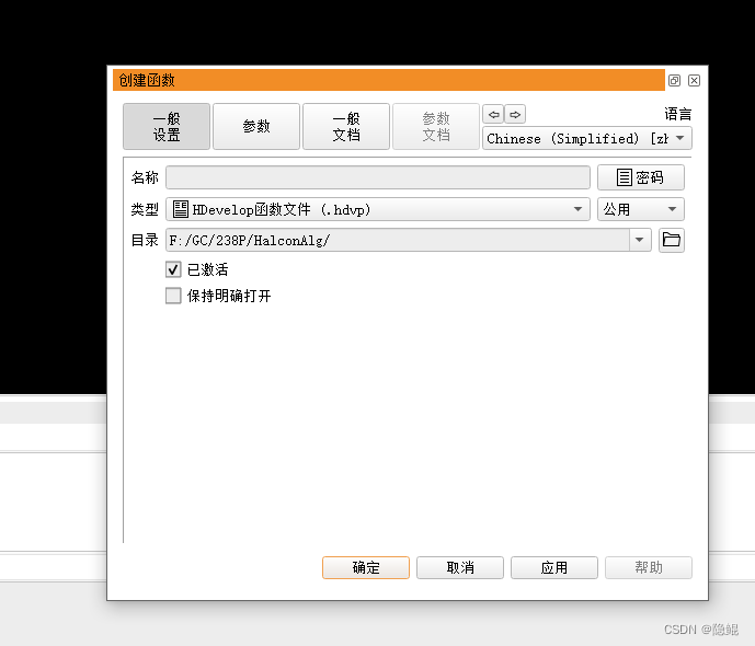 点击函数创建函数,进入如下窗口,先择.hdvp文件,参数可设置输入和输出参数