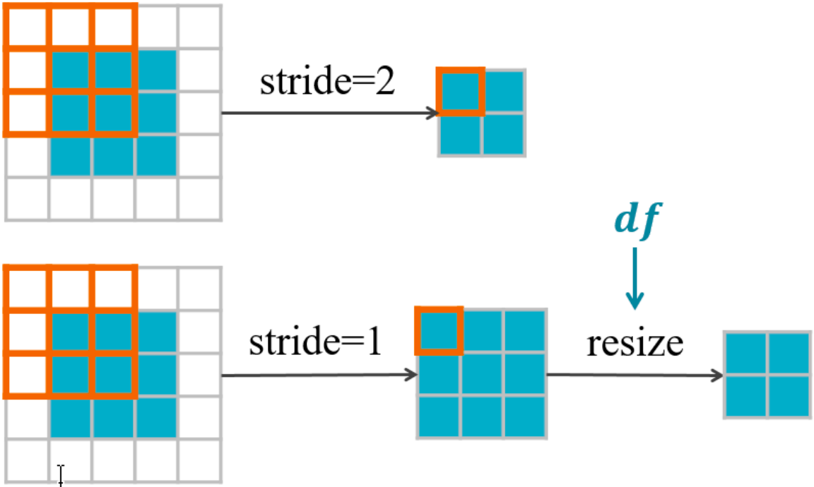 动态下采样:在骨干网络中,用双线性插值替代固定步长的卷积/池化,通过 df灵活调整特征图分辨率。