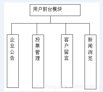 前台系统主要包括企业公告、投票管理、客户留言、新闻浏览等模块。前台系统模块如图4-1。