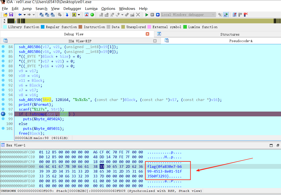 动调至断点处,获得flag,flag{0fa830e7-b699-4513-8e01-51f35b0f3293}
