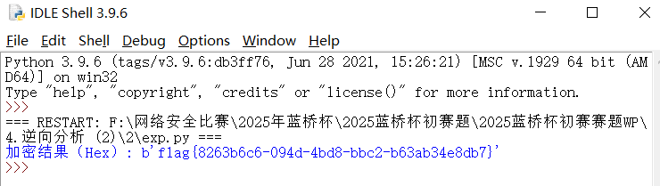 我们有了加密算法、密钥和密文,可以编写解密函数获取明文: