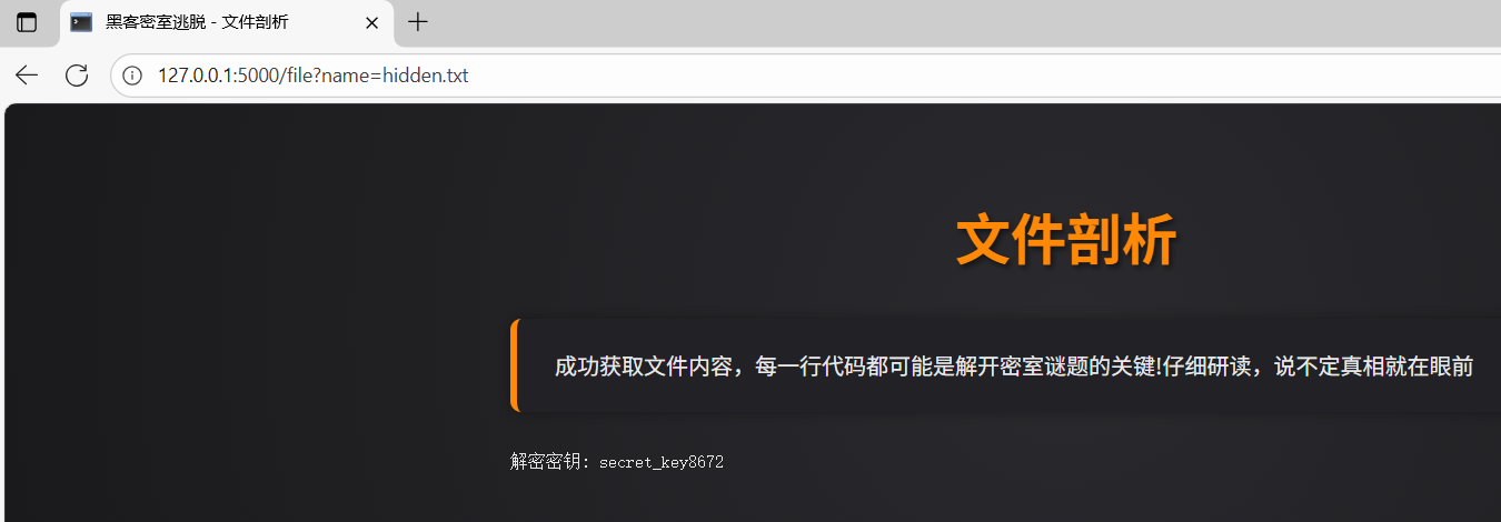 当用户访问/hidden.txt页面时返回密钥key,我们手动访问一下获得秘钥:
