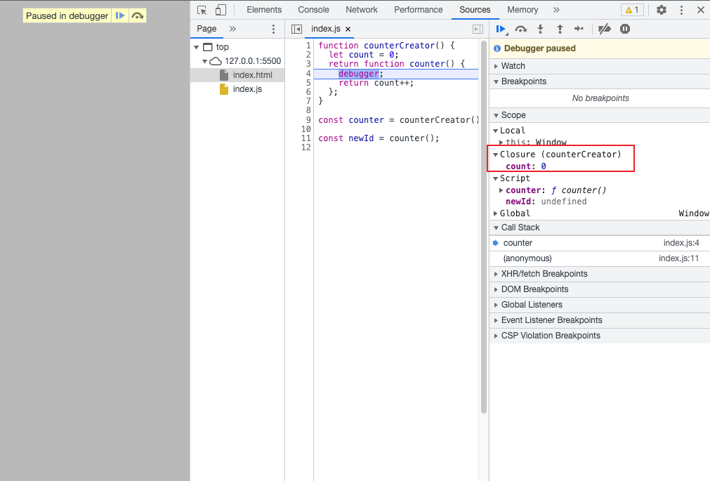再补充一个比较常见的闭包作用域。如果一个函数是通过闭包产生的,那在 Local 和 Script 还会有一个闭包作用域。