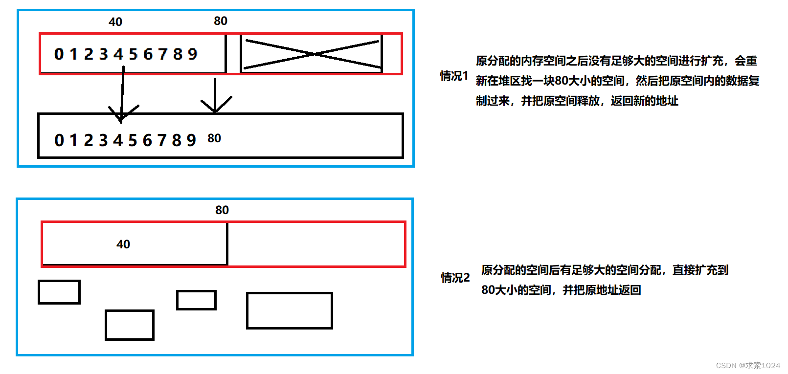 - 这个函数调整原内存空间大小的基础上,还会将原来内存中的数据移动到新的空间